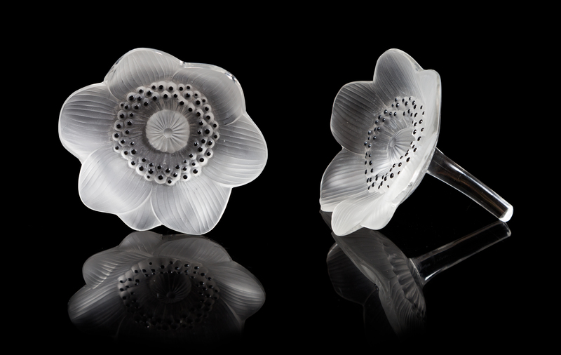 a pair of molded and frosted glass Anemone figural paperweights