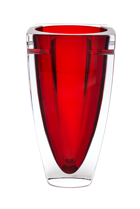 a Metra-Red vase, of tapering squared form with notched edges