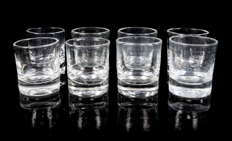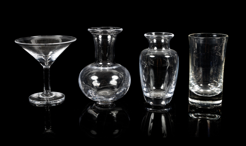 a set of eight old fashioned glasses, together with four associated Simon Pearce items