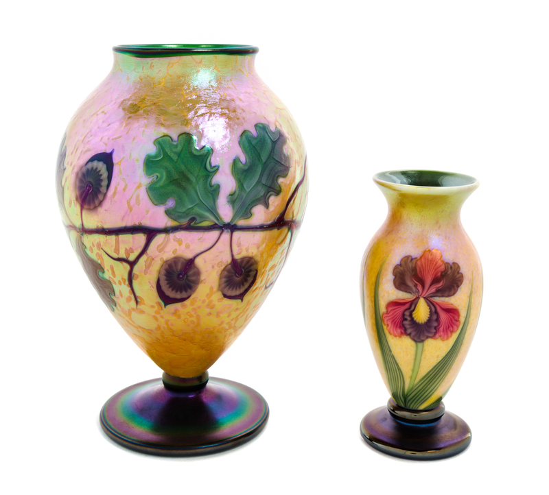 a group of two glass vasesthe smaller by Gregg Held the larger by Ed Alexander and David Smallhouse