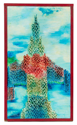 oil on corrugated cardboard with artist's frame