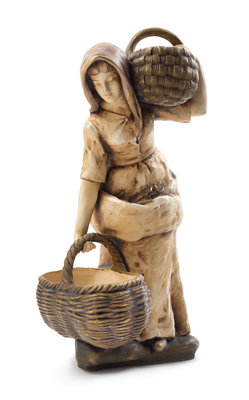 modeled to show a peasant woman carrying two baskets.