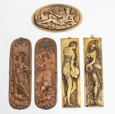 A Group of Five Bronze and Cast Metal Panels