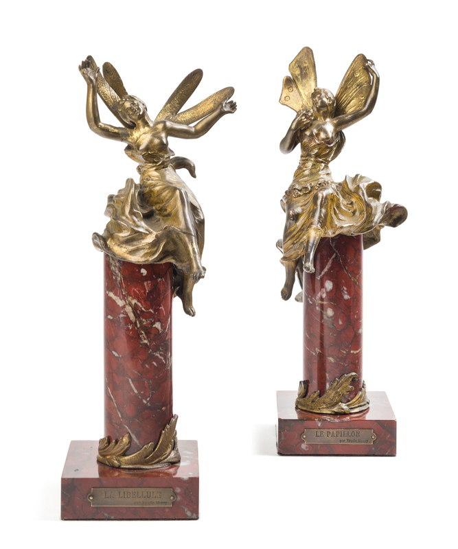 Le Papillon and La Libellule, each raised on a cylindrical pedestal.
