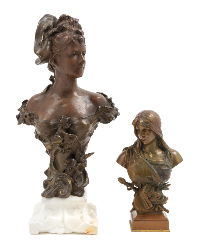 comprising an example after August Nelson, signed Aut. Nelson/ Paris, with a carved marble base, together with an example after Hans Muller, signed H. Muller.