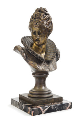 depicting a Diane de Poitiers, raised on a rectangular marble plinth.
