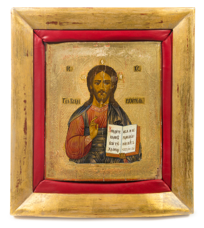 together with a Russian giltwood icon.