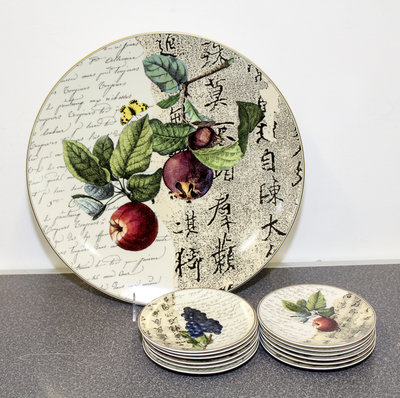 comprising 12 dessert plates and 1 platter; platter with original box.