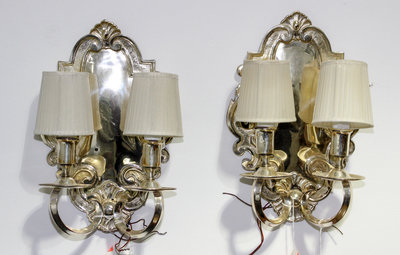 A Pair of Baroque Style Silver-Plated Metal Two-Light Wall Sconces