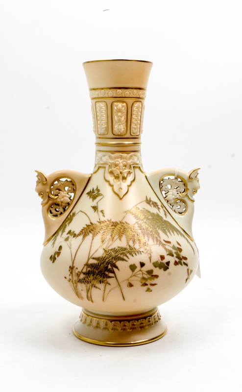 shape 1279, of bottle form with pierced handles and fern decoration.