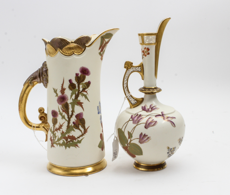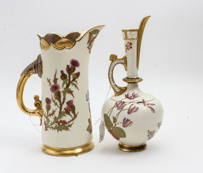 shapes 783 & 1229, comprising a ewer and a pitcher, each with handle and floral decoration.