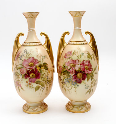 A Pair of Royal Worcester Porcelain Vases