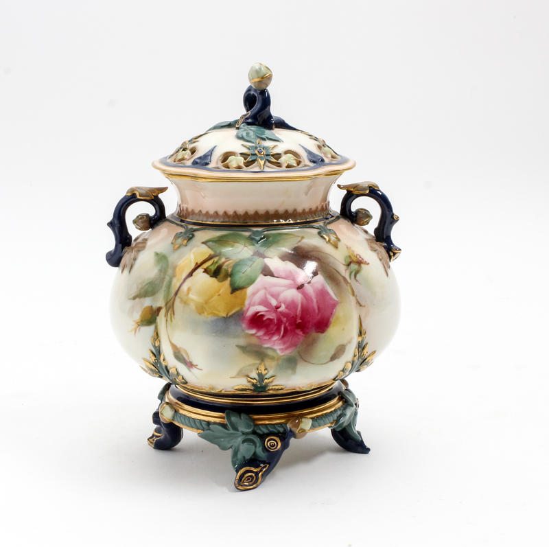 A Royal Worcester Porcelain Covered Potpourri Vase