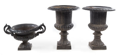 Three Victorian Style Cast Iron Urns