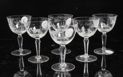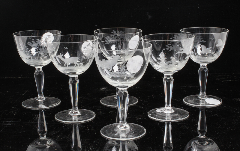 A Set of Six Etched Glass Stems