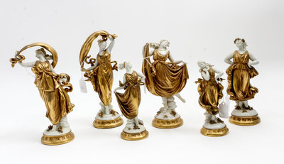 A Set of Six Capodimonte Gilt Decorated Porcelain Figures
