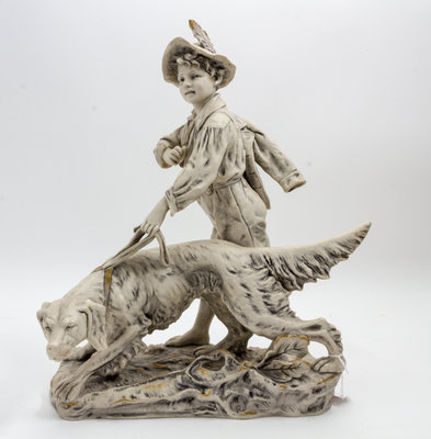 model 957, depicting a young boy with a hunting dog.