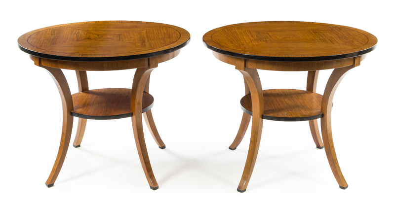 A Pair of Biedermeier Style Parcel Ebonized Center Tables