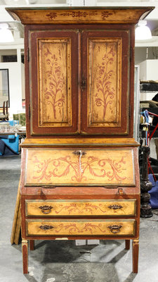 A Venetian Style Painted Secretary Bookcase