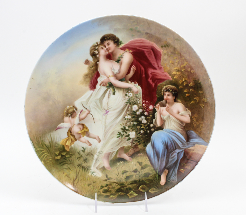 decorated with a mythological scene signed B. Herbig, the verso with Austria shield mark, numbered 1718.