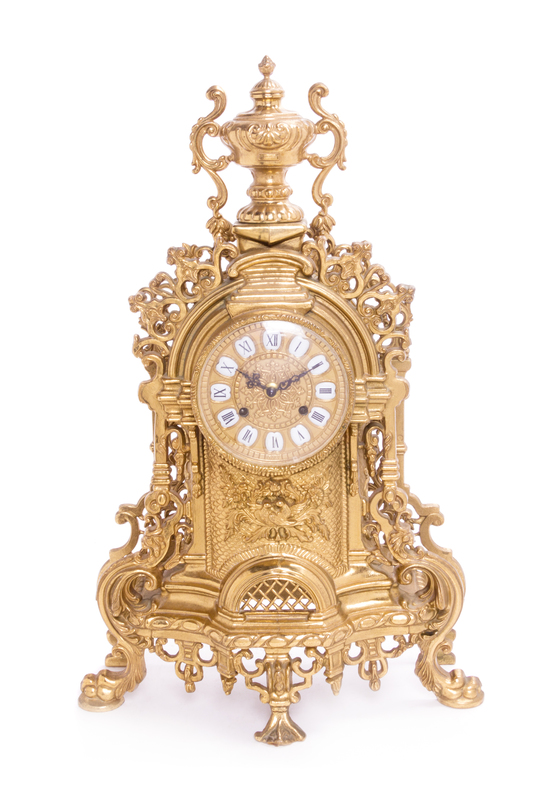 An Italian Gilt Brass Three-Piece Clock Garniture