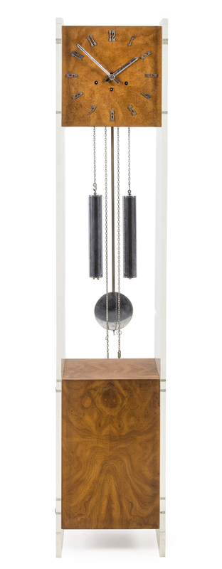 A Ridgeway Lucite and Burlwood Art Deco Style Tall Case Clock