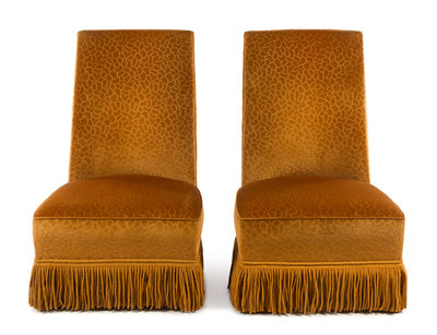 A Pair of Cut Velvet Upholstered Slipper Chairs