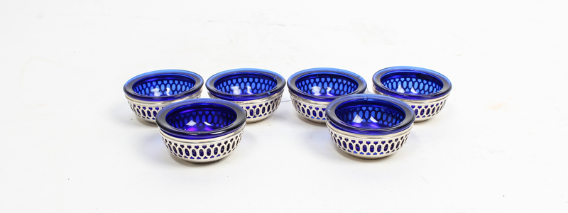 A Set of Six American Silver and Glass-Inset Salts