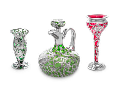 Three Silver Overlay Glass Articles