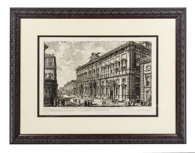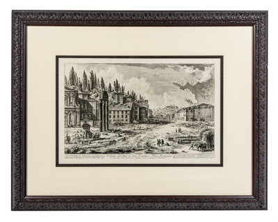 Veduta del sito, ov'era l'antico Foro Romano and Veduta del Palazzo fabbricato sul Quirinale per le Segreterie de Brevi e della Sacra Consulta, from the Vedute di Roma series (two works)