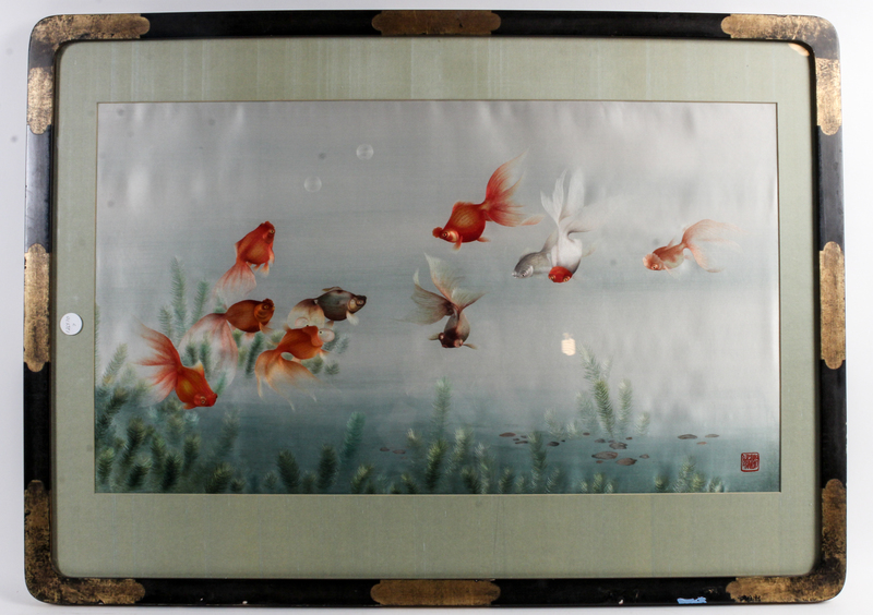 depicting gold fish, framed.
