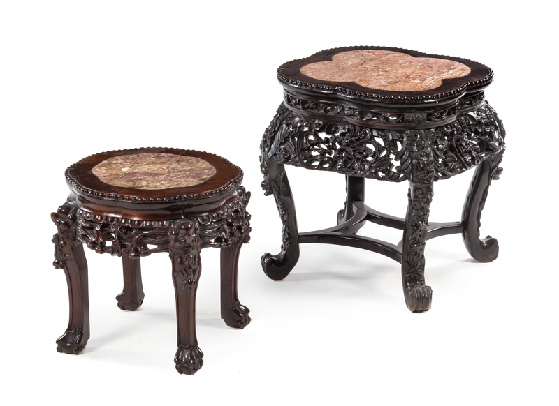 Two Chinese Marble Inset Jardiniere Stands
