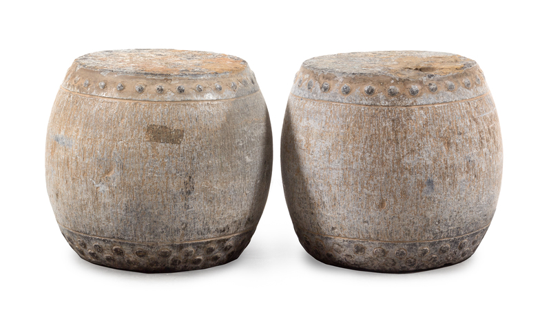 each in the shape of a drum with two rows of bosses to the upper and lower registers.