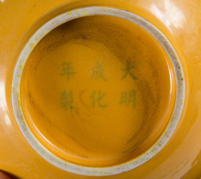 the rounded exterior wall incised with dragon and phoenix decoration, the underside bearing an apocryphal Chenghua six-character mark.