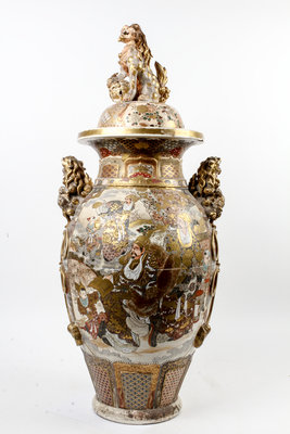 having a shishi finial surmounting a removable lid, the body decorated with figures.