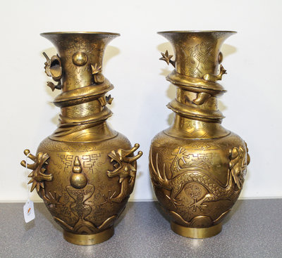 A Pair of Japanese Gilt Metal Vases