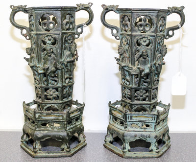 A Pair of Japanese Cast Metal Lanterns