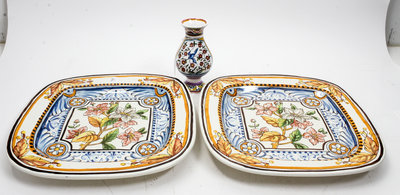 together with a similarly decorated Portuguese majolica vase.