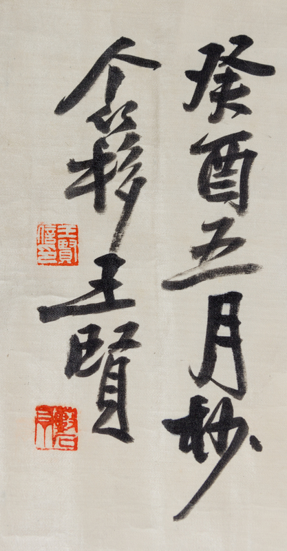 signed Geyi Wang Xian, dated guiyou (1933), the fifth luna month, two artist's seals, Wang Xian xin yin, zhi lin and one other seal.