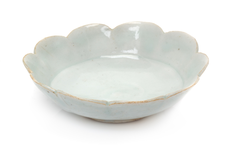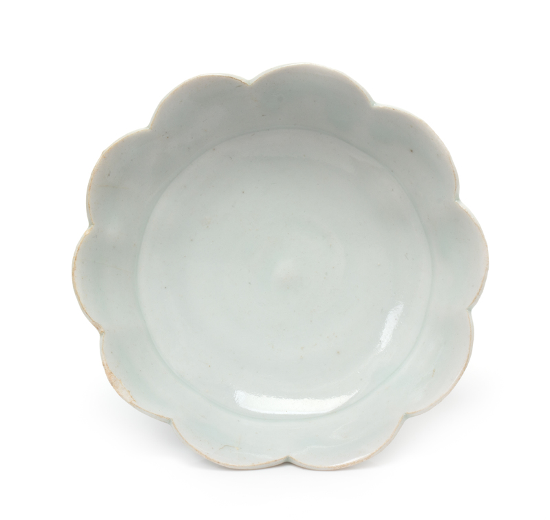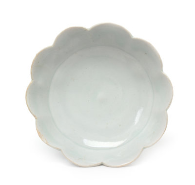 molded in floriform raised on a short straight foot, covered overall in a pale celadon glaze.