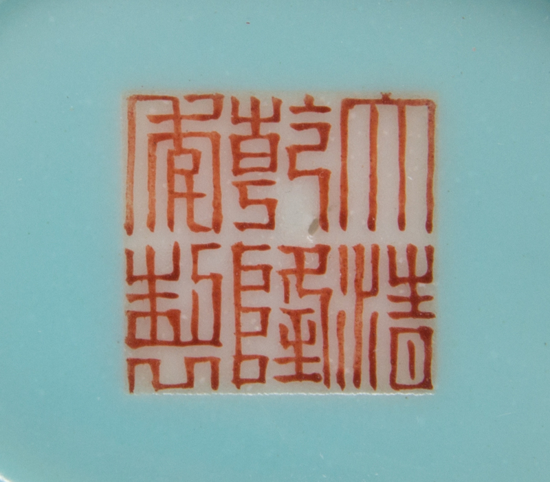 each having a baluster body decorated with lotus scrolls, the underside bearing a Qianlong six-character iron red mark.