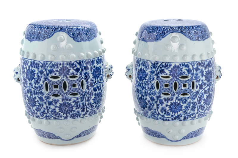 A Pair of Blue and White Porcelain Garden Stools