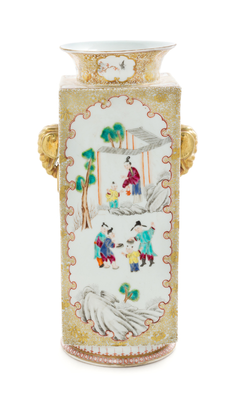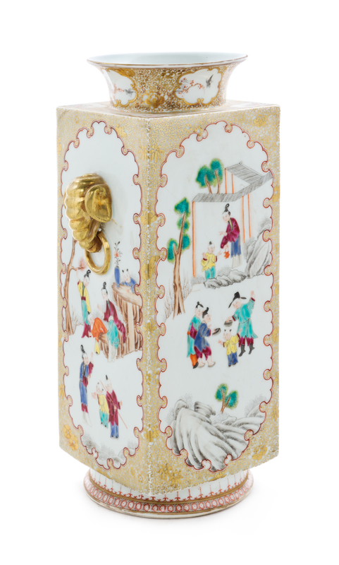 A Chinese Export Gilt Highlighted Famille Rose Porcelain Cong- Form Vase
