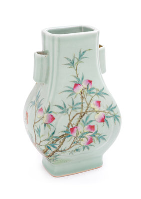 A Celadon Ground Famille Rose Porcelain Hu Vase
