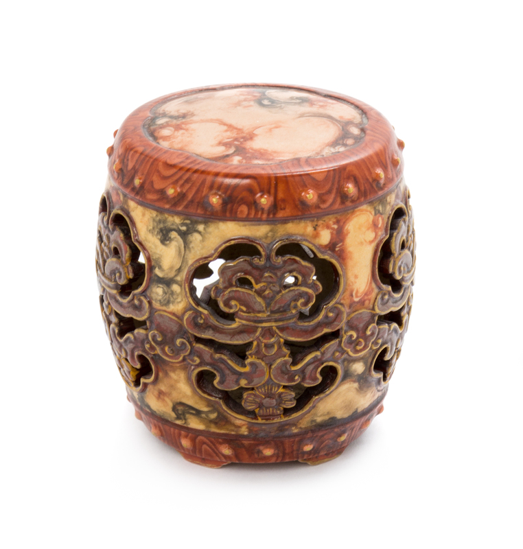 A Faux Bois Porcelain Drum-Form Ink Stand