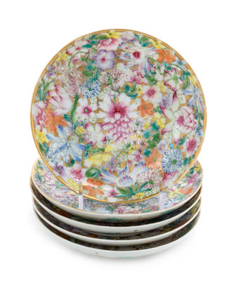 A Set of Five Famille Rose "Millefleur" Porcelain Dishes