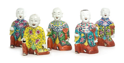 Five Famille Rose Porcelain Figures of Laughing Boys