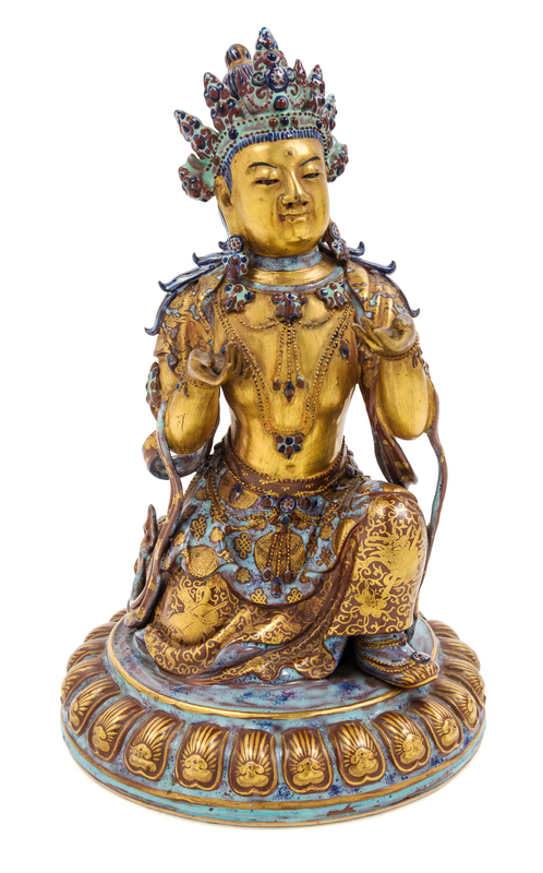 A Gilt and Robin's Egg Glazed Porcelain Figure of a Bodhisattva