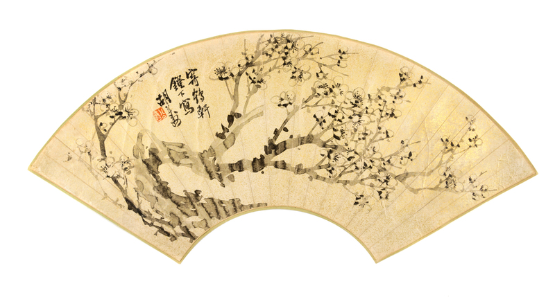 ink on gold paper, fan leaf