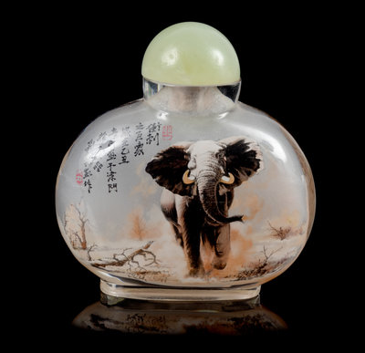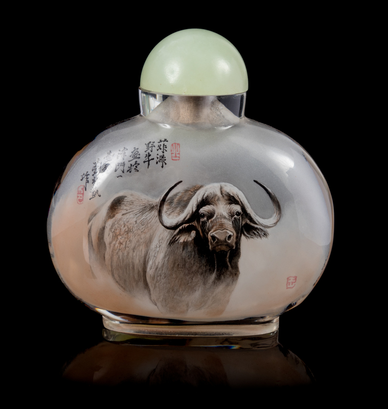 of baluster oval form, painted to one side with a bull, the other with an elephant, signed Liu Xinkai.